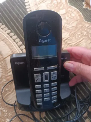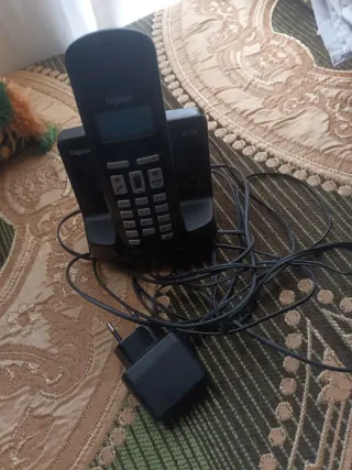 Teléfono inalámbrico Gigaset en color negro. - Base de carga incluida. - Diseño moderno y funcional.