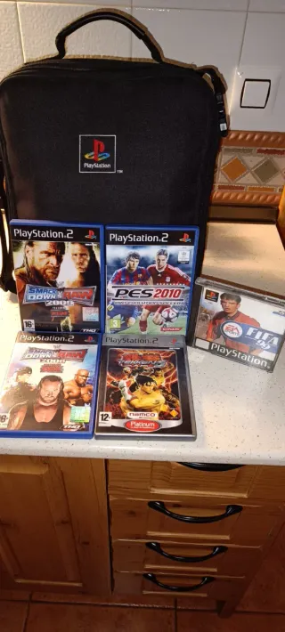 Pack PlayStation, mochila oficial + 5 juegos (manuales incluidos). Estado: todos los juegos son versión PAL España y están completos, los discos tienen marcas normales de uso pero cargan sin problema.🚨 EL PES 6 NO TIENE JUEGO REGALO LA CAJA POR NO TIRARLA🚨