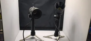 Set de dos focos compactos, ideales para iluminación en fotografía. - Diseño portátil y ligero. - Base trípode estable. - Cabezal ajustable. No incluye bombillas
