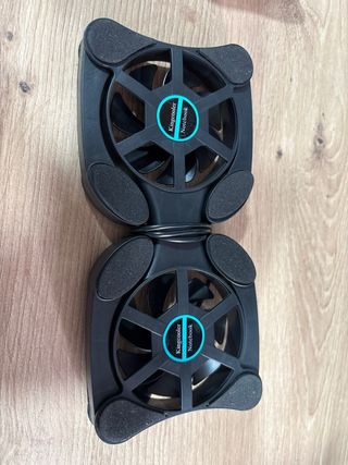 Este ventilador USB doble está diseñado para mantener tu portátil fresco. Su diseño compacto lo hace fácil de transportar. - Dos ventiladores negros. - Conexión USB.