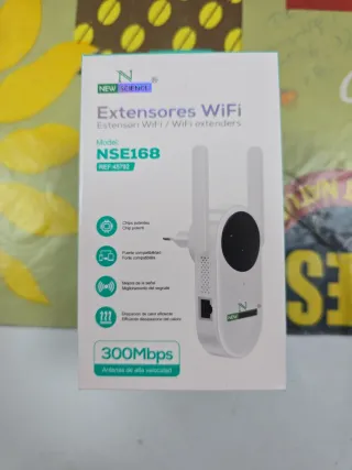 Extensor de señal WiFi de la marca NEW SCIENCE, modelo NSE168. Alcanza velocidades de hasta 300Mbps. - Chip potente para un rendimiento óptimo. - Puerto compatible. - Mejora la señal WiFi. - Disipación de calor eficiente.