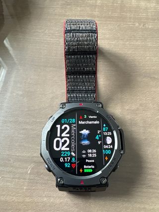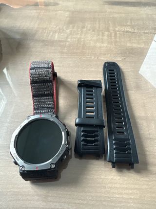 Reloj Amazfit T-Rex 3 en excelente estado, casi nuevo. Incluye correas intercambiables. - Correa DE NYLON NO INCLUIDA - Se vende Amazfit T-Rex 3 sin apenas uso , Con la última actualización 4.3.8.4 queda exactamente igual que la versión pro a excepción de la linterna y el altavoz. Se adjunta captura de compra en la página web de amazfit (precio270e con descuento y fecha 21/09/2024) en la imagen n8 - Pantalla 1'5 a color 3.000nits -Mapas y seguimiento de rutas -pagos con zepp pay