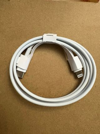 Cable de carga y datos de Apple. VERDADERO - Conector USB-C en un extremo. - Conector Lightning en el otro extremo.