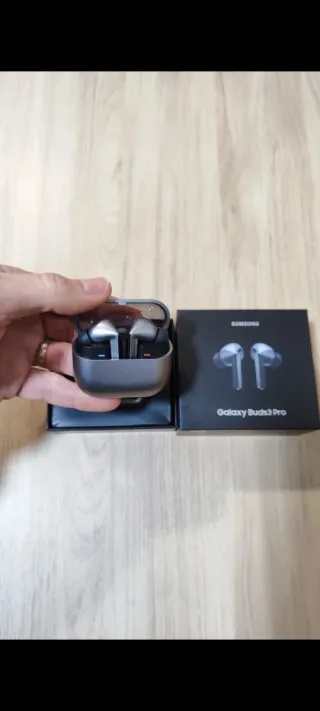 Auriculares inalámbricos Samsung Galaxy Buds3 Pro en color plateado. Diseño elegante y moderno. - Sonido inmersivo. - Cancelación activa de ruido. - Ajuste cómodo y seguro.