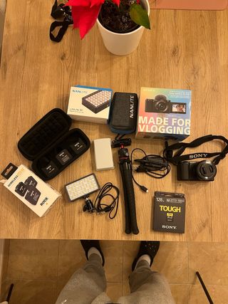 Cámara Sony ZV-E10 en perfecto estado, ideal para vlogging. - Incluye objetivo zoom. - Tarjeta de memoria SDXC TOUGH de 128GB. - Trípode. - Correa para el cuello. -Funda de transporte tengo otro anuncio con un pack completo de flash y micros Rode. Factura oficial de Fotos Ruano.