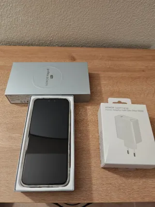 Teléfono móvil Honor Magic 8 Pro en color negro. - Caja original. - Cargador SuperCharge GaN Slim (100W). - Está nuevo de un mes