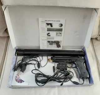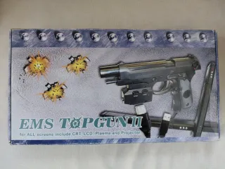 Pistola EMS TOPGUN II para juegos de disparos. - Compatible con pantallas CRT, LCD, Plasma y Proyector. - Incluye accesorios de conexión y sensores de movimiento. - Consolas: Soporta de forma nativa PlayStation 2, PlayStation 3 (solo juegos compatibles con GunCon2) y la Xbox original. - Modos de Disparo: Cuenta con interruptores para fuego automático y recarga automática. - Puntero Láser: Dispone de un láser integrado que ayuda a la precisión durante el juego.