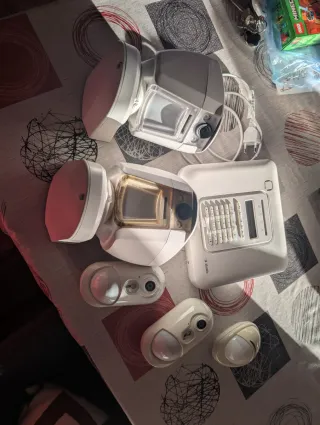 Sistema de alarma Visonic con varios componentes. - Panel de control con teclado. - Dos cámaras de seguridad exteriores. - Dos cámaras de seguridad interiores. - Un sensor de movimiento interior. - 2 mandos.