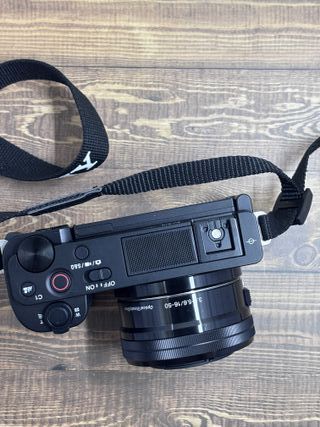 Cámara digital Sony ZV-E10 en color negro, con lente 16-50mm. No la he usado. Me la compré en junio para ir de vacaciones y no la usé - Lente: E PZ 16-50mm F3.5-5.6 OSS. - Correa para el cuello con logo Sony.