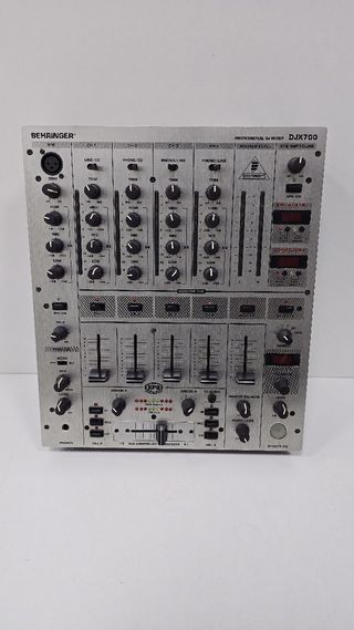 Mesa de mezclas profesional Behringer DJX700 en color plata. Ideal para DJs. - 4 canales estéreo. - Ecualizador de 3 bandas por canal. - Salida Master Level y XPO Surround.