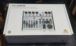 Mesa de mezclas digital Behringer Flow8. Compacta y fácil de usar. Muy poco uso. La vendo porque necesito más canales. - 8 canales. - Control a través de app. - Conectividad USB.