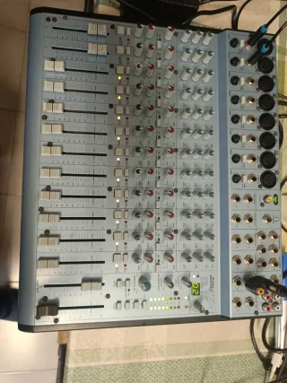 Mesa de sonido de 16 canales con usb y efectos -Limpiada y testeada -(el lado derecho de la salida alt 3/4 no suena aunque es una función que no es imprescindible se usa la salida main mix que esa funciona correctamente). -El resto funciona correctamente. -La fuente de alimentación no es la original pero cumple con las especificaciones de la mesa.