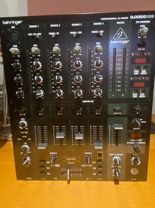 Mezclador profesional de DJ Behringer DJX900 USB en color negro. - 4 canales. - Conexión USB. - Ecualizador de 3 bandas por canal. - Salida Master Balance y Booth Level. - Efectos de sonido y contador de bpms. - Usado solo una vez, sin caja original.