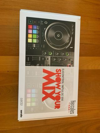 Mesa de DJ Hercules DJControl Inpulse 500 en color negro y gris. Ideal para mezclar música. Ideal tanto para principiantes como para DJs que quieran practicar en casa. Funciona perfectamente y ha sido cuidada. Incluye: - Controladora Hercules DJControl Inpulse 500 - Compatible con Serato DJ Lite y DJUCED - Jog wheels grandes y precisos - Pads para hot cue, loop, sampler, etc. - Cable para conectar con portatil Perfecta para aprender a mezclar, practicar o empezar a pinchar en eventos pequeños.