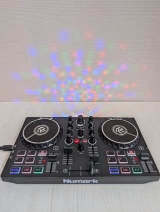 Mesa de DJ Numark Party Mix 2 en color negro. - Jog wheels para control. - Controles de EQ y nivel. - Botones Sync, Cue y Pad Mode. Se puede ver y probar.
