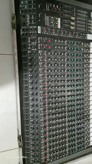 Mesa de mezclas profesional en color negro. - Múltiples canales para audio. - Controles deslizantes y giratorios. - Conexiones variadas en el panel trasero.