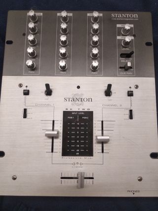 Mesa de mezclas profesional Stanton de 2 canales. Ideal para DJs. - Diseño compacto y robusto. - Controles intuitivos para una fácil operación. - Conexiones versátiles para diferentes equipos.