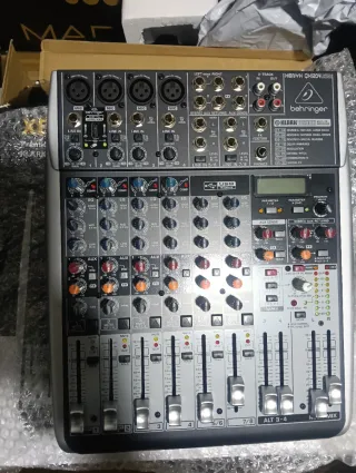 Mesa muy completa, ideal para home studio, directos, podcast o DJ. Incluye interfaz USB para conectar al ordenador, procesador de efectos Klark Teknik, compresores en los primeros canales y múltiples entradas para micrófonos e instrumentos. Características principales: 12 entradas 4 previos de micrófono Xenyx de alta calidad Compresores integrados en canales mono Procesador de efectos Klark Teknik Conexión USB para grabación directa al ordenador Ecualización de 3 bandas por canal Salidas principales y auxiliares La vendo porque ya no la uso. Siempre cuidada y guardada en estudio.