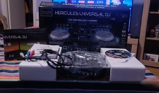 Mesa de.mezclas dj Hércules en perfecto estado y funcionando con Manual de instrucciones y CD para instalarlo Se ha usado 2 veces Puedes mezclar con la.mesa.o.cpn.el.pc. Es fantástico y la marca es garantia de calidad