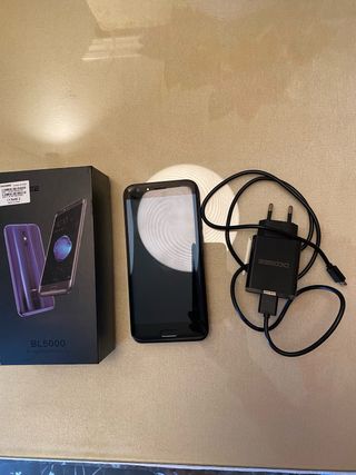 Teléfono móvil Doogee BL5000 en color negro. Incluye cargador,m y caja. El plástico protector que trae en la parte trasera no se la quitado. No enciende (no se porque), para piezas o arreglo. Está en perfecto estado, pero no enciende - sistema operativo: Android 7.0 Nougat de fábrica - Pantalla 5,5 pulgadas - Cámara dual trasera 13 MP y frontal 8MP -RAM 4GB - Almacenamiento 64 Gb, ampliable micro SD - bateria 5050 mAh - 4G y gps integrado - sensor huella dactilar - dimensiones: 155,2x75,8x 10,3 mm - peso alrededor de 210g