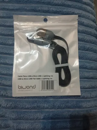 Cable plano de carga y datos de 1 metro de longitud. - Conector USB A a Micro USB y Lightning. - Diseño plano para evitar enredos.