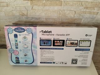 Tablet de 7 pulgadas con micrófono y app de karaoke, temática de Frozen. - Pantalla de 7 pulgadas. - Incluye micrófono. - Compatible con app de karaoke. - Diseño inspirado en Frozen. - Ranura para tarjeta Micro SD de hasta 4GB. -abierto pero nuevo a estrenar