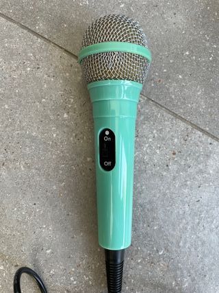 Con micrófono, cambiador de voz, melodías incluidas. Enchufe para MP3