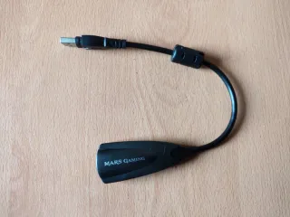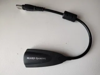 Adaptador de audio externo con conexión USB a Jack de la marca Mars Gaming. Adecuado para conectar dispositivo de audio convencional. Tarjeta de sonido. Entrada de audio 3.5mm. Entrada de sonido 3.5mm. Plug & Play sin necesidad de drivers. Cable USB equipado con un núcleo de ferrita. Ideal para: Auriculares con micrófono Videollamadas Teletrabajo Clases online Gaming Sustituir una tarjeta de sonido o puerto Jack averiado Funcional. Solo recogida. # periféricos adaptator micrófono microphone phones auriculares stereo sound adapter