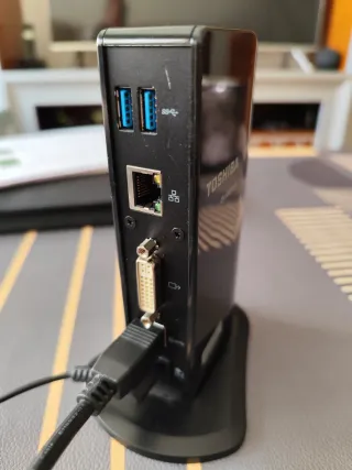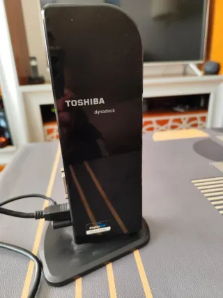 Dock station Toshiba Dynadock U3.0. Toshiba dynadock U3.0. Tecnología de conectividad: Alámbrico, Interfaz de host: USB 3.0 (3.1 Gen 1) Type-A. Ethernet LAN, velocidad de transferencia de datos: 10,100,1000 Mbit/s. Marca compatible: Toshiba. Voltaje de entrada AC: 100-240, Corriente de salida: 2,37 A. Ancho: 530 mm, Profundidad: 114 mm, Altura: 233 mm Puertos e Interfaces -Tecnología de conectividad: Alámbrico -Cantidad de puertos USB 2.0: 2 -Interfaz de host: USB 3.0 (3.1 Gen 1) Type-A -Cantidad de puertos tipo A USB 3.0 (3.1 Gen 1): 4 -Ethernet LAN (RJ-45) cantidad de puertos: 1 -Número de puertos HDMI: 1 -Micrófono, jack de entr