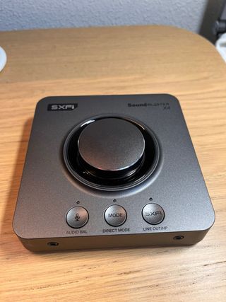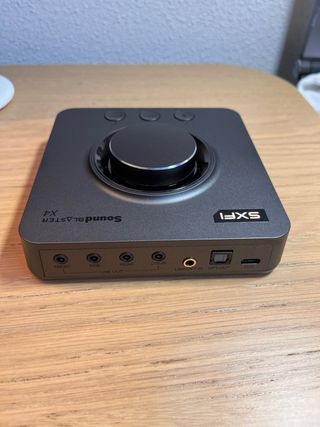 Tarjeta de sonido Sound Blaster X4. Mejora drásticamente el sonido de tu PC con esta tarjeta externa USB-C (se puede conectar a un puerto USB-C o normal). - Saluda de auriculares, óptica y line out. - Entrada de micrófono con tratamiento de la voz. - Perfiles de sonido. - Balanceo de audio. - Todo configurable desde la app de Creative. Pregunta lo que quieras.