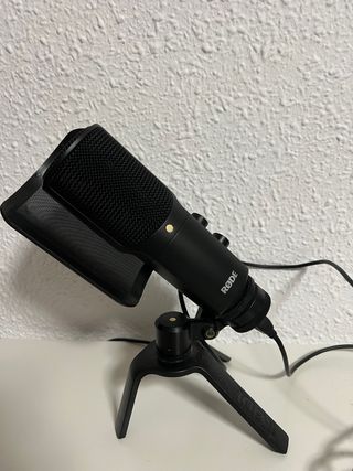 Micrófono de condensador RODE NT-USB en color negro. Ideal para grabaciones de voz y música. - Conexión USB directa. - Incluye soporte de escritorio. - Diseño elegante y profesional.