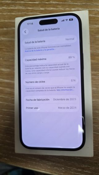 iPhone 15 en excelente estado. Lo vendo porque me van a regalar otro. Lleva protector de gel en la pantalla puesto hace 15 días, y carcasa para carga inalámbrica, que costó 15€ y la regalo con el móvil. Como nuevo, como se puede ver en la captura del tiempo de uso y capacidad de la batería. - Capacidad de 128 GB. - Color negro/gris.
