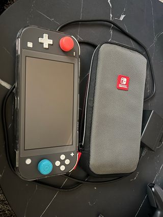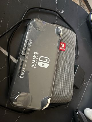 Consola Nintendo Switch Lite en color negro, con accesorios. - Incluye funda protectora. - Incluye cargador. - Incluye protectores de joystick rojos y azules. - incluye tarjeta de memoria de 128gb -incluye protectores de silicona puestos en la consola No incluye juegos