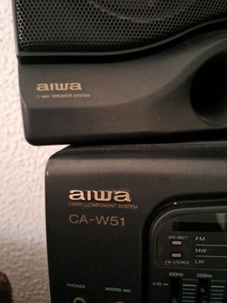 Minicadena Aiwa CA-W51 Sólo venta en persona En muy buen estado. Entrada auxiliar posterior para CD, etc. Altavoces independientes.