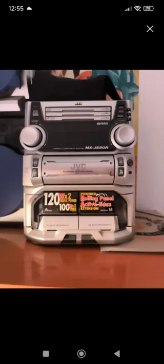 ¡Vuelve a disfrutar del sonido clásico con este equipo de música nostálgico! Pongo a la venta una minicadena JVC modelo MX-D301T, un equipo compacto pero con un sonido potente y de calidad, ideal para coleccionistas, nostálgicos o simplemente para darle un toque retro a tu salón o estudio. Marca y Modelo: JVC MX-D301T. Componentes: Unidad central y dos altavoces originales a juego. * Lector de CD (cargador simple). * Doble pletina de cassette (ideal para tus cintas). * Sintonizador de Radio FM/AM. El equipo lleva mucho tiempo guardado y NO HA SIDO PROBADO. Se vende TAL CUAL, sin garantía (Puede que funcione o no)