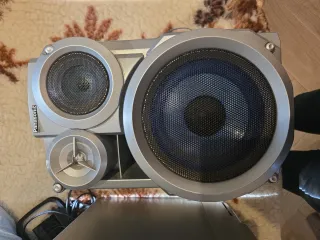minicadena con 4 altavoces, mando, no funciona los cds pero se puede usar con el movil o el pc con auxiliar o cable jack, precio no negociable
