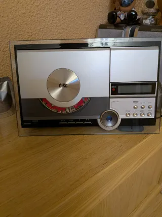 Pongo a la venta esta exclusiva minicadena Grundig Ovation 2, famosa por su diseño vanguardista con frontal de espejo y su excelente calidad acústica. Es un equipo ideal para quienes buscan elegancia y buen sonido en un formato compacto. Tecnología Magic Fidelity: Sonido potente y cristalino que llena cualquier habitación. Funciones: Reproductor de CD, Radio FM/AM con RDS y entrada auxiliar (ideal para conectar un receptor Bluetooth o el móvil). Diseño: Muy cuidada, el frontal de espejo está en perfecto estado. Queda espectacular como elemento decorativo en el salón o despacho. Estado: Funcionando correctamente.