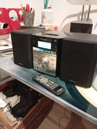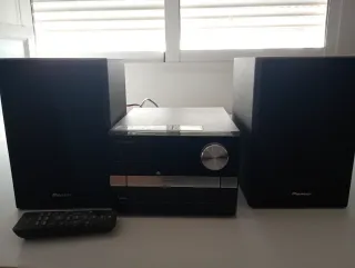 Minicadena Pioneer en perfecto estado. Incluye dos altavoces. mando Sistema de sonido compacto y elegante, ideal para espacios reducidos. - Diseño discreto y moderno. - Altavoces de gran calidad. - Fácil de usar.