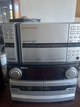Equipo de música Pioneer en buen estado. Incluye una minicadena con reproductor de CD, doble pletina de casete y sintonizador de radio. - Sistema de sonido envolvente. - Ecualizador gráfico. - Control de graves y agudos.