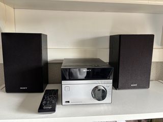 Minicadena de la marca Sony en color negro con tocadiscos. Está en perfecto estado el equipo y el mueble. Los altavoces tb los tengo pero no sé si funcionan, llevan tiempo sin usarse. No hago envíos, solo recoger.