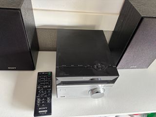 Minicadena Sony CMT-S40D con altavoces. Función de audio aux., Radio FM/AM, USB, DVD/CD. No tiene Bluetooth. Especificaciones en las fotos. Muy poco uso.