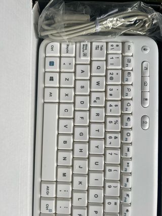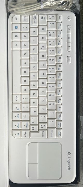 Teclado inalámbrico Logitech en color blanco. Compacto y funcional. - Diseño elegante. - Incluye touchpad integrado. - Conexión inalámbrica.