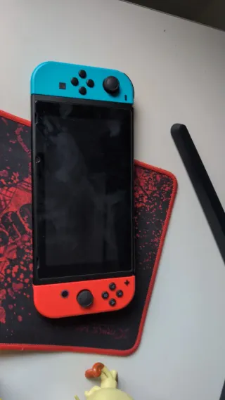 Consola Nintendo Switch con Joy-Cons en color azul y rojo. - Diseño icónico de Nintendo. - Combinación de colores vibrante.