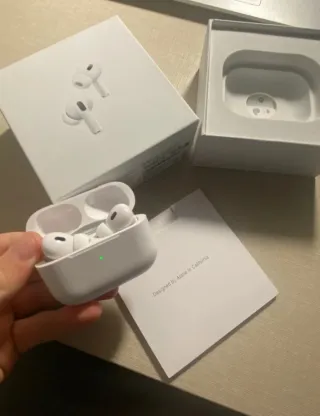 Airpods pro 2 en perfecto estado. Todo los complementos originales vienen en la caja pero sin cable ✅Se venden porque me he comprado los nuevos y estos ya no los uso ✅Precio poco negociable ✅cualquier duda preguntar