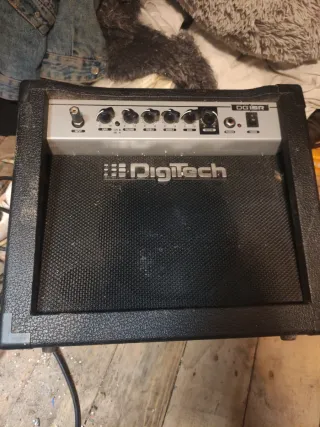 Amplificador de guitarra Digitech DG15 en buen estado. Compacto y versátil para practicar. - Controles de ganancia, volumen, graves, medios y agudos. - Entrada para auriculares. - Entrada de audio auxiliar.