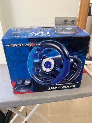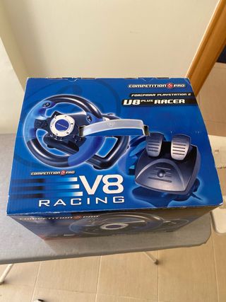 Volante de competición V8 Plus Racer para PlayStation 2. - Diseño deportivo en azul y negro. - Incluye pedales. - Compatible con PlayStation 2.