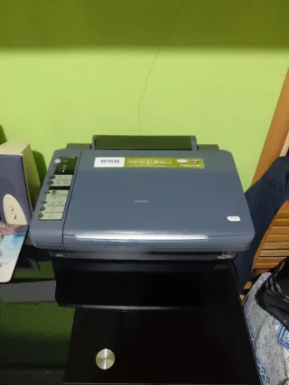 Impresora multifuncion Epson en color gris. - Diseño compacto y funcional. - Panel de control intuitivo. - Vendo por no usar, quizas necesite limpieza de cabezales. - Cartuchos de tinta independientes.