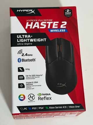 Ratón inalámbrico HyperX Pulsefire Haste 2 en color negro totalmente nuevo y precintado. Es ultraligero y cuenta con conexión 2.4GHz y Bluetooth. - Peso: 60g - Hasta 100 horas de autonomía - Sensor HyperX 26K con 26,000 DPI - Compatible con PC, PS5/PS4 y Xbox Series X/S/Xbox One - Tecnología NVIDIA Reflex. ⚠️Sólo gente sería y realmente interesada. 🤝Preferencia al trato en mano. ❌No me interesan los cambios. 🚚Posibilidad de envio a usuarios con buenas valoraciones.