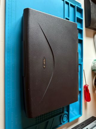 Vendo este portátil ya que estoy reduciendo mi colección. - Pentium MMX 133MHz - RAM 16 MB - Windows 95 Plus! instalado en adaptador a SD - Disquetera funcionando - La carcasa tiene grietas y partes faltantes como se ve en las fotos - Va perfecto pero la pantalla al ser STN no tiene buen contraste y la batería está muerta. - Incluyo cargador genérico