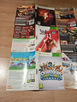 Lote de portadas para videojuegos de Xbox 360. - Incluye portadas de juegos como Resident Evil 5, WWE 2K15, Halo 3, Halo Classics, Skylanders Swap Force, y Kinect Rush. - Portadas en buen estado, listas para usar. - Ideales para completar tus videojuegos o para coleccionar. - A 2 € cada una u 8 € x todas.